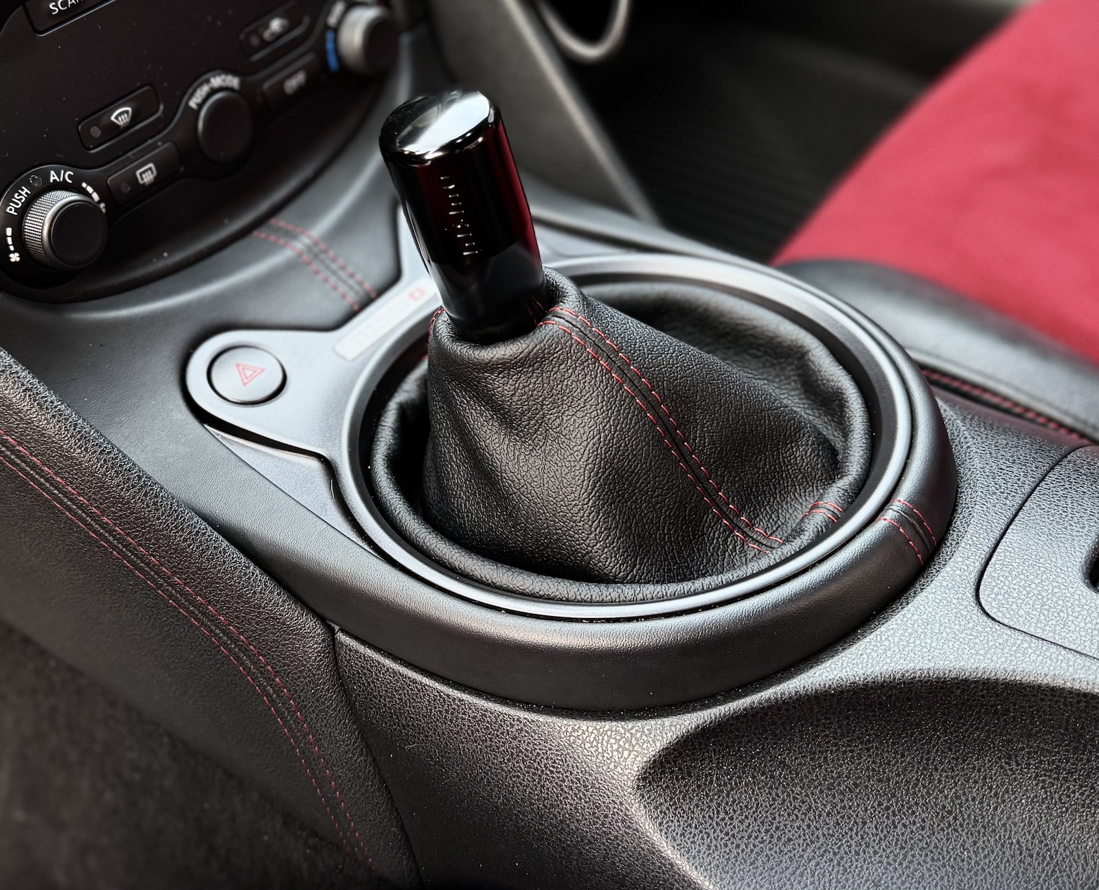 Replace cheap factory Nissan 370Z vinyl boot with our beautiful leather one - designed to fit like the original. Our Nissan 370Z shift boot is hand crafted from finest Italian leather.