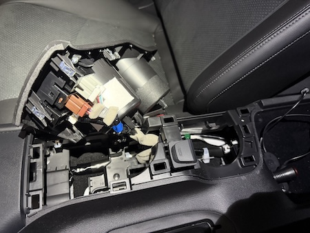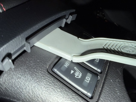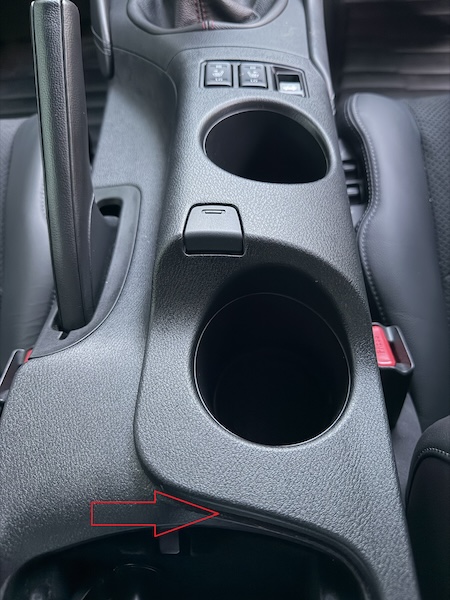5. Gently pry up the molding around the shifter, starting from the back edge by the cupholders. |