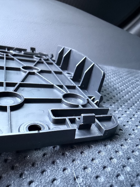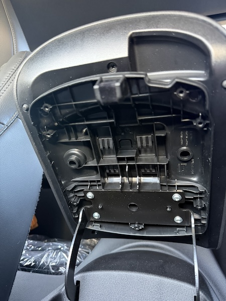 14. Reverse the process to reinstall the armrest with your new cover. When installing the black plastic cover, insert it flush along the bottom edge first (where the plastic clips are) and then gently close it up while using the bottom edge as the pivot point. You will feel the cover snap into place as you push it flush closed, and then screw it back on securely with the black screws. |