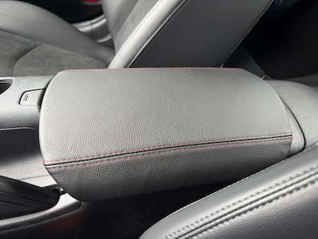 14. Install the cover on the armrest. Use contact cement or similar glue, align the cover nicely on the armrest and fold the leather around the edges. Contact us if you need assistance with this step, w'll be happy to provide you more detailed pictures from other vehicles - but the 400Z armrest has a shape that makes the cover pretty easy to install. |