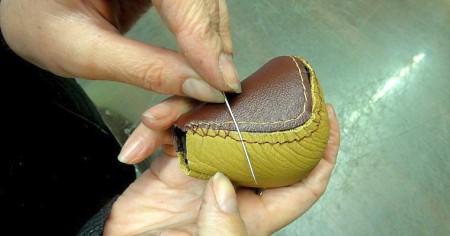 5. Apply glue to the rest of the knob – the front part – all the way to the edges to already glued leather. And put the smaller leather part there making sure the edges meet the edges of the rear-top leather already glued. This will require some strength and pressure but pay attention to this in order to achieve a nice final effect.