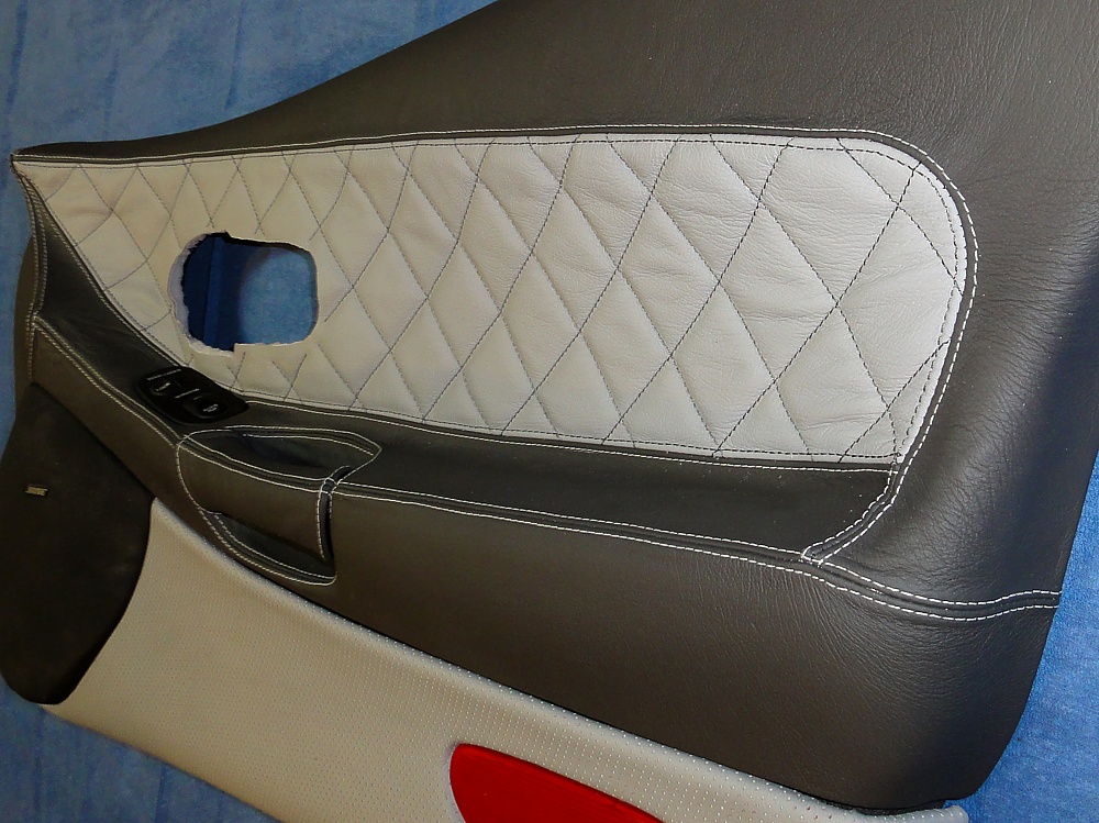 Price includes 2 pieces - for both doors! Cover upper part of door, from the speaker up. A great way to add unique custom styling to the interior. Hand crafted from premium quality Italian leather for impressive sports car styling and long lasting durability. Easy installation - no modifications required. This is a leather cover for installation over respective original part. Substrate parts are NOT INCLUDED, the picture is for illustrative purposes only.40+ colors and plethora of available styles (configured on next page.)