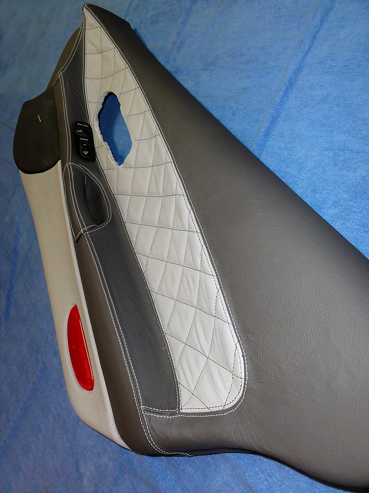 Price includes 2 pieces - for both doors! Cover the scuffing from use and turn a dull piece of plastic into something interesting. This is a leather cover for installation over respective original part. Substrate parts are NOT INCLUDED, the picture is for illustrative purposes only.40+ colors and plethora of available styles (configured on next page.)