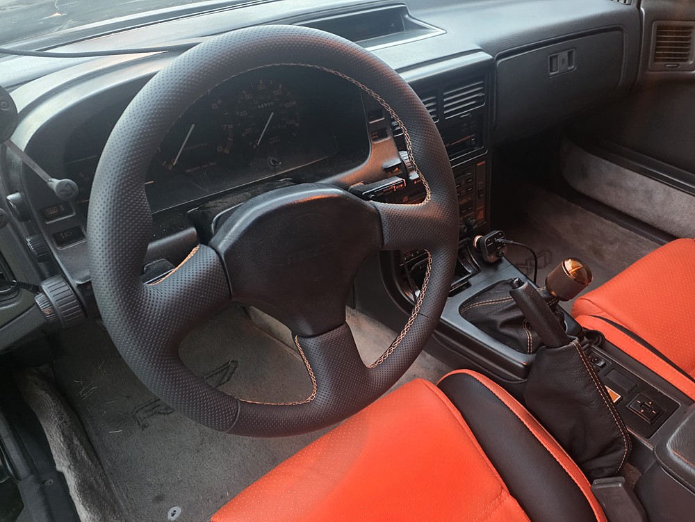 Tailored to this steering wheel only. Will not fit other variants. Includes thread and needle to lace the cover on. IMPORTANT: REPLACES factory leather if present on the wheel. HEATED WHEELS: installs over factory leather, do not remove! Our Mazda RX7 steering wheel cover - type 2 reupholsters both rim and spokes, unlike competing products. Makes your Mazda RX7 steering wheel look better than new! Hand made from finest Italian leather, fits like original equipment.40+ colors and plethora of available styles (configured on next page.)