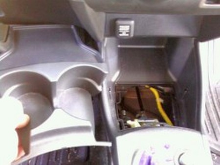 2. Remove the cup holders by placing your thumb by the shifter boot front and your fingers in the cup holders toward the back, just apply upward pressure and they will simply pop out. |