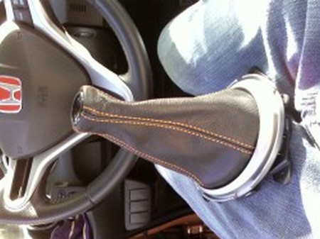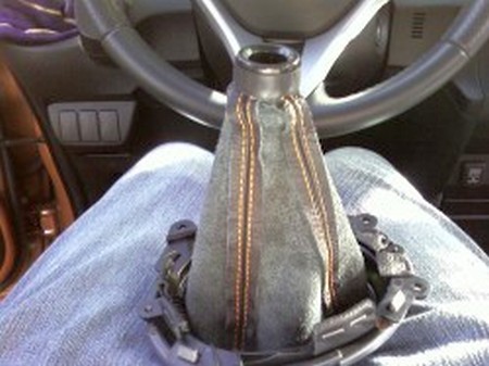 This will also be difficult due to the stiffer new leather boot just take your time and work all the stitching so it sits evenly and not all lumpy. Remember that the larger part of the ring sits above the boot; it fits perfectly to the base of the shift knob. |