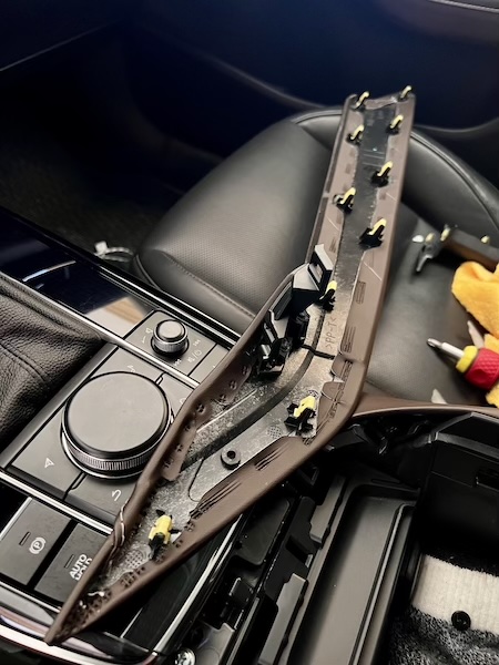 2. Remove center trim piece in front of glovebox by prying upwards. |