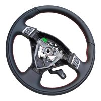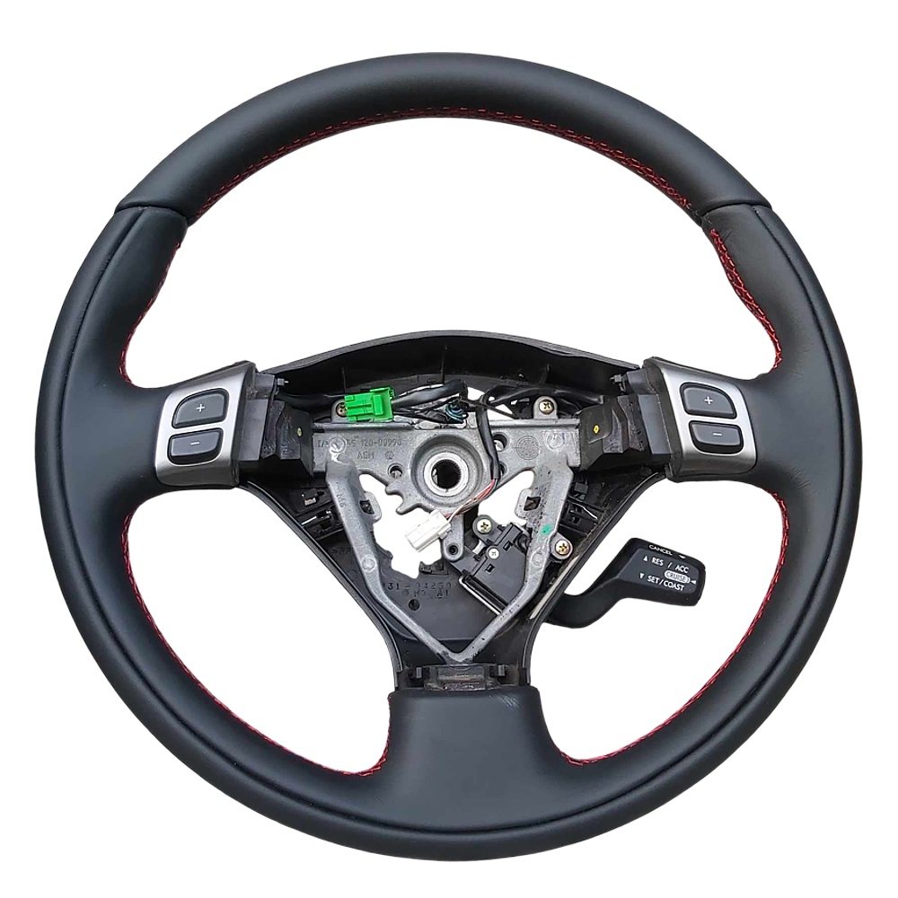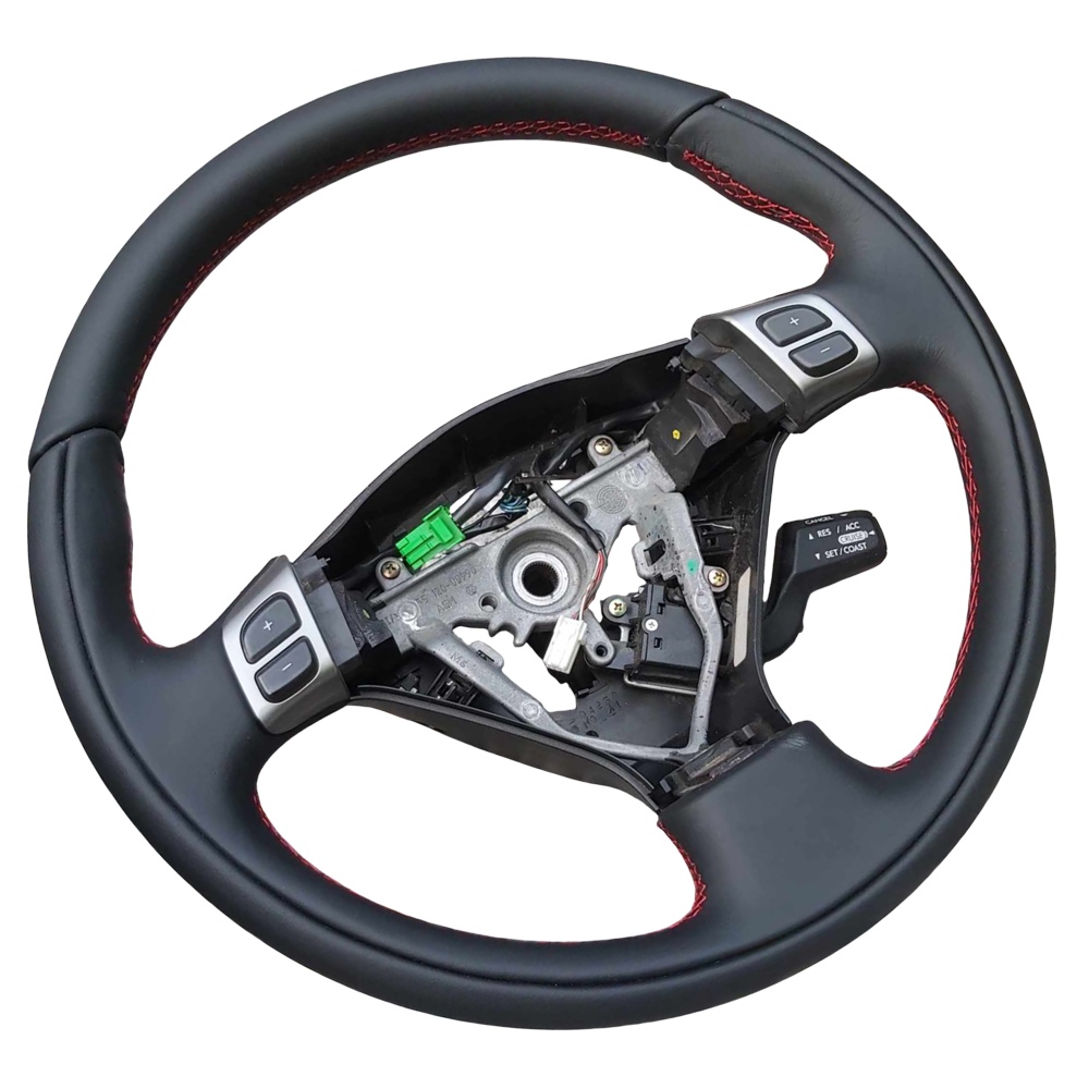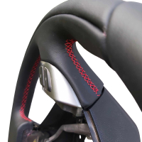 Subaru wheel in black leather, black thread... AND OUR WHEEL PADDING FOR ADDED THICKNESS!
